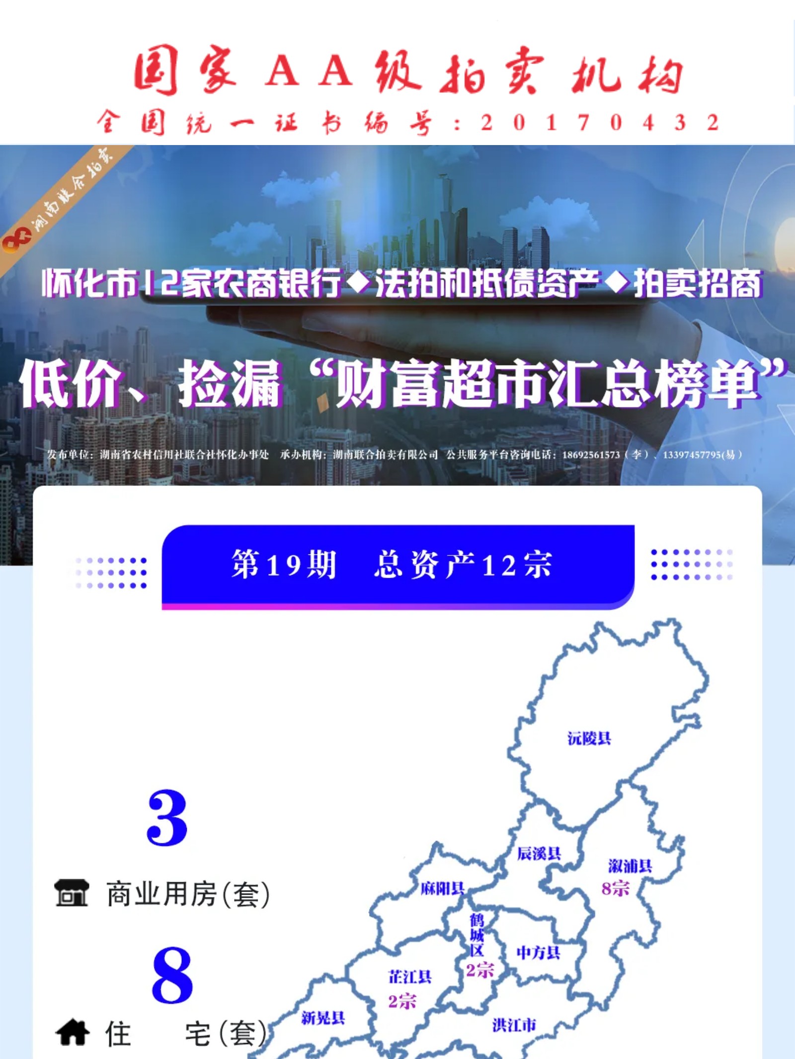 受溆浦縣財(cái)政局委托,湖南聯(lián)合拍賣(mài)有限公司茲定于2021年9月25日上午10時(shí),對(duì)溆浦縣城區(qū)、部..